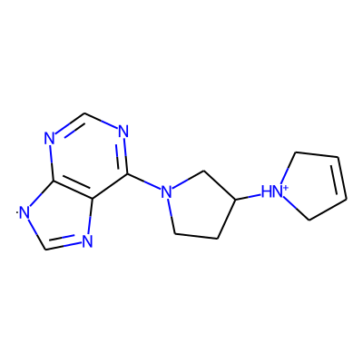 C1=CC[NH+](C2CCN(c3ncnc4c3N=C[N]4)C2)C1| HBA: | 6 | RingCount: | 4 |