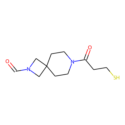 O=CN1CC2(CCN(C(=O)CCS)CC2)C1| HBA: | 4 | RingCount: | 2 |