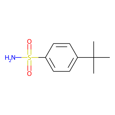 CC(C)(C)c1ccc(S(N)(=O)=O)cc1| HBA: | 3 | RingCount: | 1 |