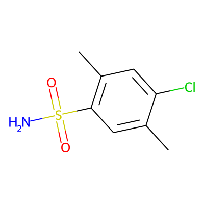 Cc1cc(S(N)(=O)=O)c(C)cc1Cl| HBA: | 3 | RingCount: | 1 |