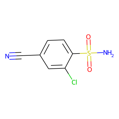 N#Cc1ccc(S(N)(=O)=O)c(Cl)c1| HBA: | 4 | RingCount: | 1 |