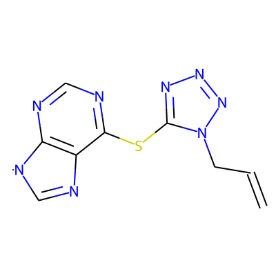 C=CCn1nnnc1Sc1ncnc2c1N=C[N]2| HBA: | 8 | RingCount: | 3 |