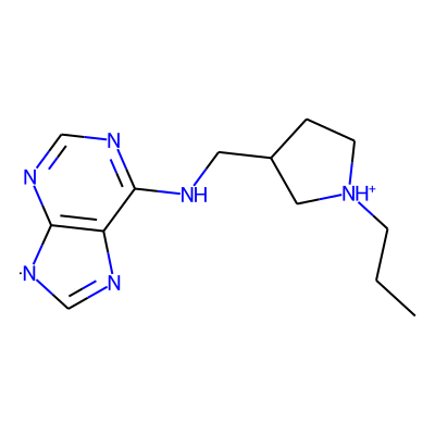 CCC[NH+]1CCC(CNc2ncnc3c2N=C[N]3)C1| HBA: | 6 | RingCount: | 3 |