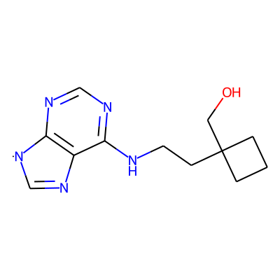 OC[C@H]1O[C@@H](n2cnc3c(NCCC4(CO)CCC4)ncnc32)[C@H](O)[C@@H]1OAglycone: