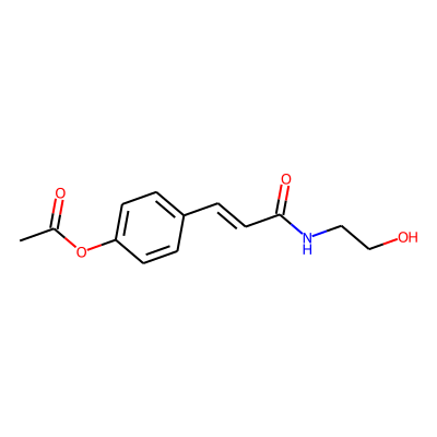 CC(=O)Oc1ccc(C=CC(=O)NCCO)cc1| HBA: | 5 | RingCount: | 1 |