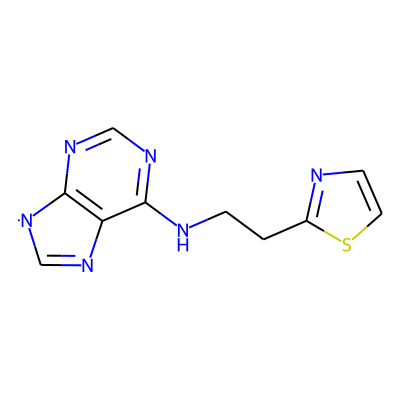 C1=Nc2c(ncnc2NCCc2nccs2)[N]1| HBA: | 6 | RingCount: | 3 |