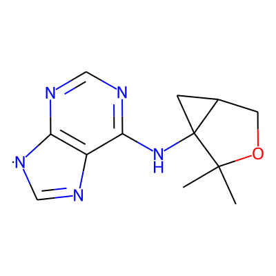 CC1(C)OC[C@@H]2C[C@@]21Nc1ncnc2c1ncn2[C@@H]1O[C@H](CO)[C@@H](O)[C@H]1OAglycone: