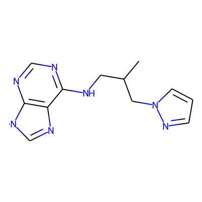 CC(CNc1ncnc2c1N=C[N]2)Cn1cccn1| HBA: | 7 | RingCount: | 3 |