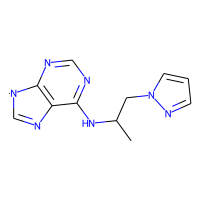 CC(Cn1cccn1)Nc1ncnc2c1N=C[N]2| HBA: | 7 | RingCount: | 3 |
