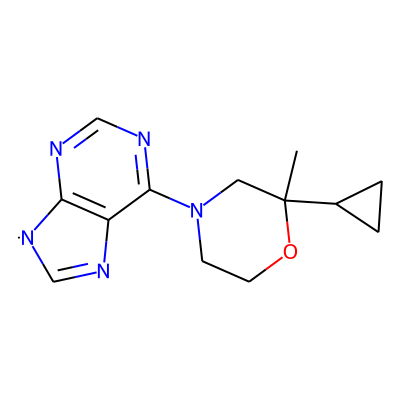 CC1(C2CC2)CN(c2ncnc3c2N=C[N]3)CCO1| HBA: | 6 | RingCount: | 4 |