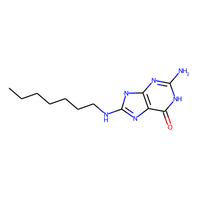 CCCCCCCNc1nc2c(=O)[nH]c(N)nc2n1[C@@H]1O[C@H](CO)[C@@H](O)[C@H]1OAglycone: