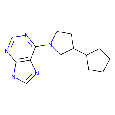 C1=Nc2c(ncnc2N2CCC(C3CCCC3)C2)[N]1| HBA: | 5 | RingCount: | 4 |