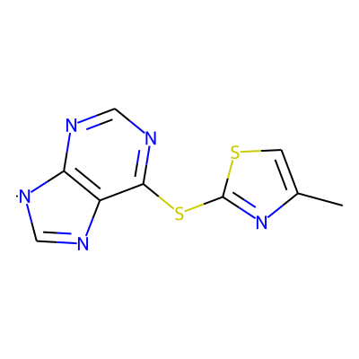 Cc1csc(Sc2ncnc3c2N=C[N]3)n1| HBA: | 5 | RingCount: | 3 |