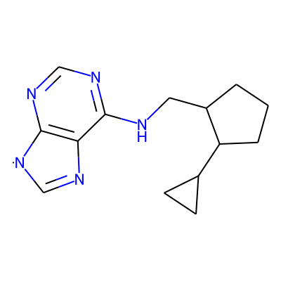 C1=Nc2c(ncnc2NCC2CCCC2C2CC2)[N]1| HBA: | 5 | RingCount: | 4 |