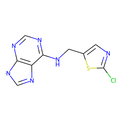 Clc1ncc(CNc2ncnc3c2N=C[N]3)s1| HBA: | 6 | RingCount: | 3 |