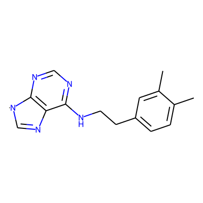 Cc1ccc(CCNc2ncnc3c2N=C[N]3)cc1C| HBA: | 5 | RingCount: | 3 |