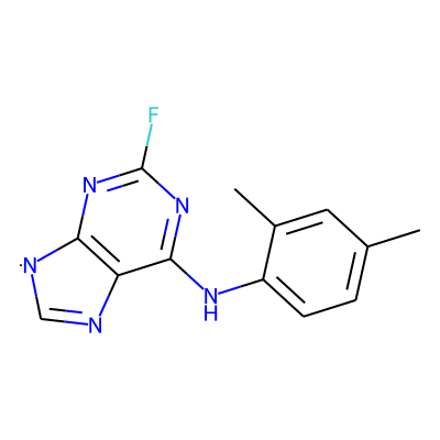 Cc1ccc(Nc2nc(F)nc3c2N=C[N]3)c(C)c1| HBA: | 5 | RingCount: | 3 |