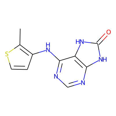 Cc1sccc1Nc1ncnc2[nH]c(=O)[nH]c12| HBA: | 6 | RingCount: | 3 |