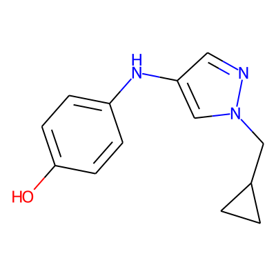 Oc1ccc(Nc2cnn(CC3CC3)c2)cc1| HBA: | 4 | RingCount: | 3 |