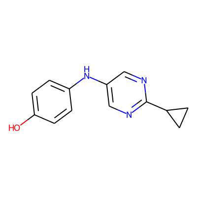 Oc1ccc(Nc2cnc(C3CC3)nc2)cc1| HBA: | 4 | RingCount: | 3 |