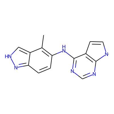 Cc1c(Nc2ncnc3c2C=C[N]3)ccc2n[nH]cc12| HBA: | 6 | RingCount: | 4 |