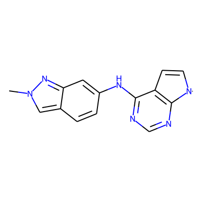 Cn1cc2ccc(Nc3ncnc4c3C=C[N]4)cc2n1| HBA: | 6 | RingCount: | 4 |