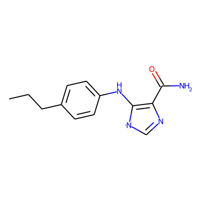 CCCc1ccc(NC2=C(C(N)=O)N=C[N]2)cc1| HBA: | 5 | RingCount: | 2 |