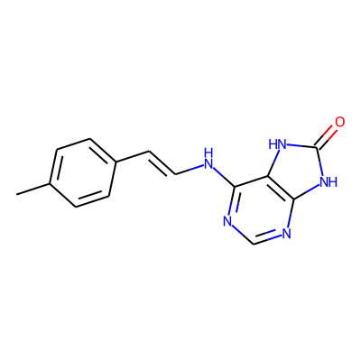Cc1ccc(C=CNc2ncnc3[nH]c(=O)[nH]c23)cc1| HBA: | 6 | RingCount: | 3 |