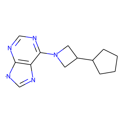 C1=Nc2c(ncnc2N2CC(C3CCCC3)C2)[N]1| HBA: | 5 | RingCount: | 4 |