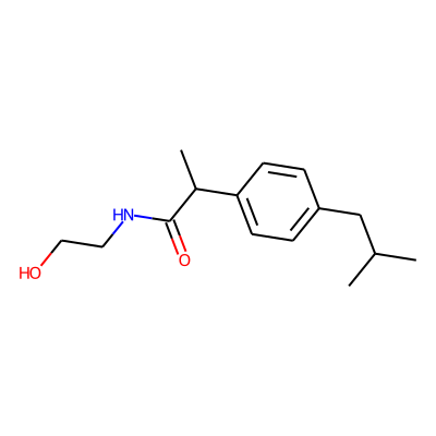 CC(C)Cc1ccc(C(C)C(=O)NCCO)cc1| HBA: | 3 | RingCount: | 1 |