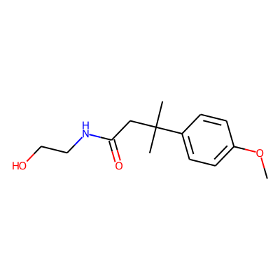 COc1ccc(C(C)(C)CC(=O)NCCO)cc1| HBA: | 4 | RingCount: | 1 |
