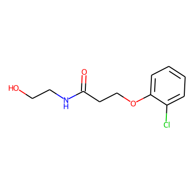O=C(CCOc1ccccc1Cl)NCCO| HBA: | 4 | RingCount: | 1 |