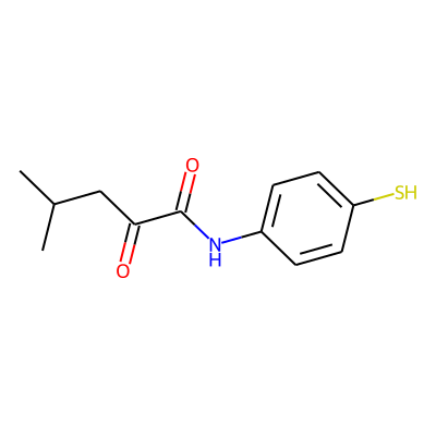 CC(C)CC(=O)C(=O)Nc1ccc(S)cc1| HBA: | 3 | RingCount: | 1 |