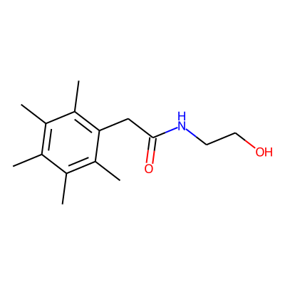 Cc1c(C)c(C)c(CC(=O)NCCO)c(C)c1C| HBA: | 3 | RingCount: | 1 |