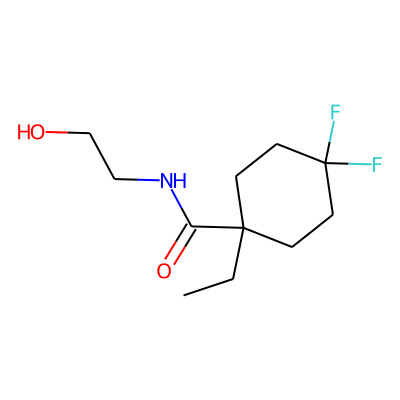 CCC1(C(=O)NCCO)CCC(F)(F)CC1| HBA: | 3 | RingCount: | 1 |