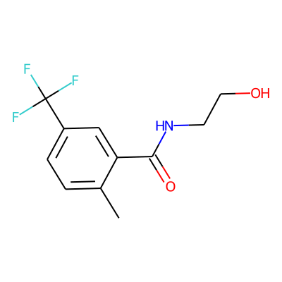 Cc1ccc(C(F)(F)F)cc1C(=O)NCCO| HBA: | 3 | RingCount: | 1 |