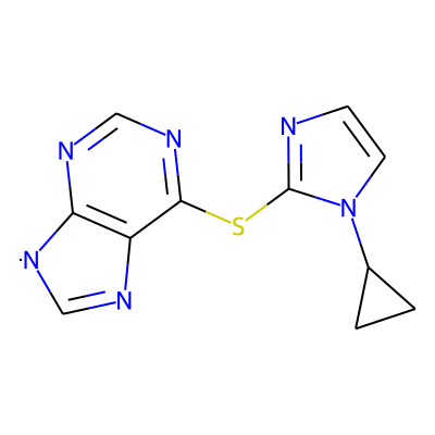 C1=Nc2c(ncnc2Sc2nccn2C2CC2)[N]1| HBA: | 6 | RingCount: | 4 |