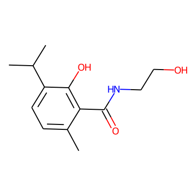 Cc1ccc(C(C)C)c(O)c1C(=O)NCCO| HBA: | 4 | RingCount: | 1 |