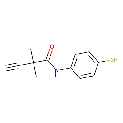 C#CC(C)(C)C(=O)Nc1ccc(S)cc1| HBA: | 2 | RingCount: | 1 |