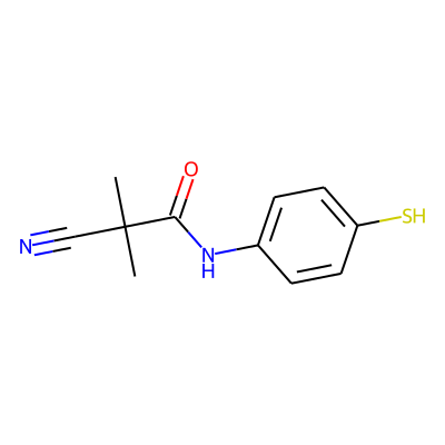 CC(C)(C#N)C(=O)Nc1ccc(S)cc1| HBA: | 3 | RingCount: | 1 |
