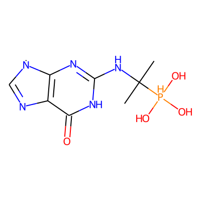 CC(C)(Nc1nc2c(c(=O)[nH]1)N=C[N]2)[PH](O)(O)O| HBA: | 9 | RingCount: | 2 |
