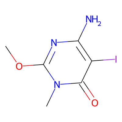 COc1nc(N)c(I)c(=O)n1C| HBA: | 5 | RingCount: | 1 |