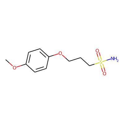 COc1ccc(OCCCS(N)(=O)=O)cc1| HBA: | 5 | RingCount: | 1 |