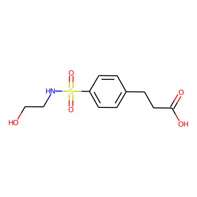 O=C(O)CCc1ccc(S(=O)(=O)NCCO)cc1| HBA: | 6 | RingCount: | 1 |