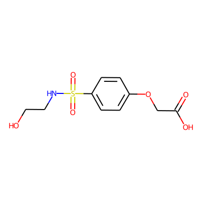 O=C(O)COc1ccc(S(=O)(=O)NCCO)cc1| HBA: | 7 | RingCount: | 1 |