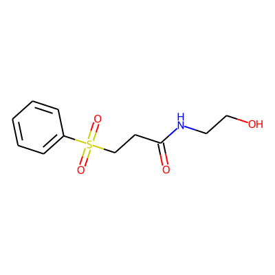 O=C(CCS(=O)(=O)c1ccccc1)NCCO| HBA: | 5 | RingCount: | 1 |