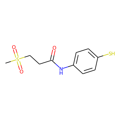 CS(=O)(=O)CCC(=O)Nc1ccc(S)cc1| HBA: | 4 | RingCount: | 1 |