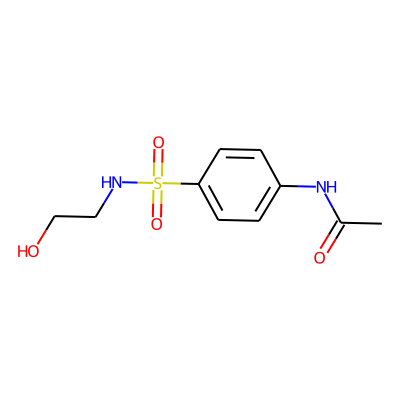 CC(=O)Nc1ccc(S(=O)(=O)NCCO)cc1| HBA: | 6 | RingCount: | 1 |