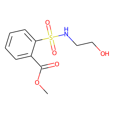 COC(=O)c1ccccc1S(=O)(=O)NCCO| HBA: | 6 | RingCount: | 1 |