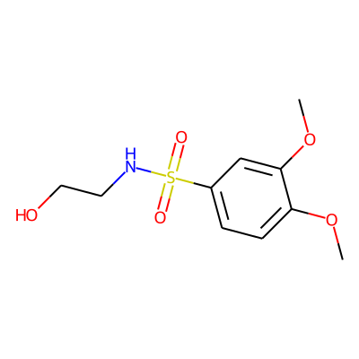 COc1ccc(S(=O)(=O)NCCO)cc1OC| HBA: | 6 | RingCount: | 1 |